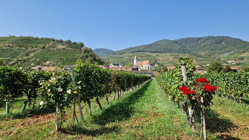 Efter frukost gör vi en utflykt i Weinviertel som vinområdet norr om Wien kallas. Vi beger oss först till Eggenburg som ligger på gränsen mellan Waldviertel och Weinviertel alltså där skogen övergår till vingårdar. Vi fortsätter sedan till den lilla charmiga medeltida staden Retz. Trots en turbulent historia har man lyckats bevara sin ringmur, stadsportar och torn. Uppbyggd kring ett dominikanerkloster blev man tidigt en vinproducent och denna långa tradition av vinhandel har lett till att man har landets största vinkällare. Retz Erlebniskeller är en 20 km lång labyrint. (Här är faktiskt ett större tunnelnät under jorden än gatunät ovan.) Efter lunch fortsätter vi på vindlande, vackra vinvägar till Falkenstein. Detta var centralorten för vinproduktionen i området. Det vin som producerades mellan Wien och Brünn genom århundradena har reglerats från just Falkenstein. De kalkrika jordarna och klimatet som ju pendlar mellan varma sommardagar och kalla nätter har gjort dem kända för mycket aromatiska viner gärna med en fruktig ton och lite kryddigt. Vi besöker Weingut Kramer där vi får en guidad rundtur och prova några viner so ger oss en bild av den komplexa aromatiska smakbilden.