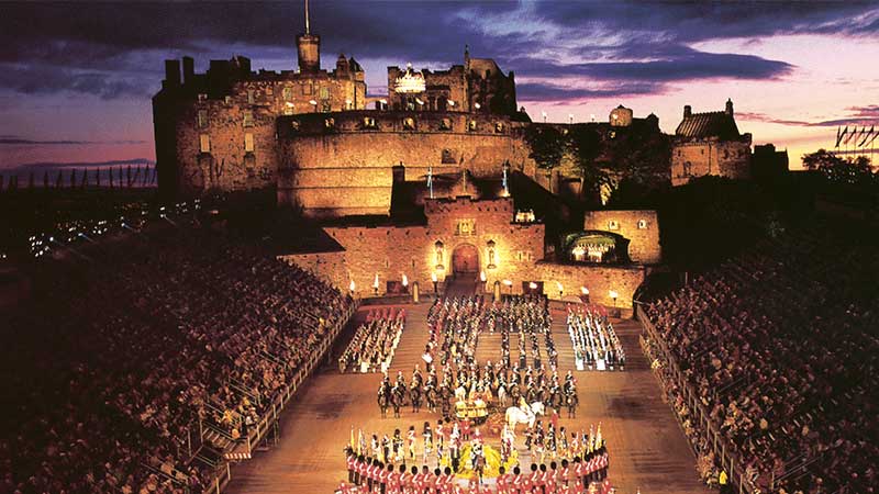 Efter en stadig frukost siktar vi Englands kust och Tynemouths hamn. Färden fortsätter med vår bekväma buss genom Newcastle och norrut mot Skottland. Vi gör ett uppehåll i Carter Bar vid den skotska gränsen och ser ruiner av de praktfulla kloster, i de hårt drabbade gränsstäderna. Vid Melrose finns både en praktfull katedral och Sir Walter Scotts hem Abbotsford House. Resan går vidare genom det böljande vackra landskapet till Skottlands stolta huvudstad Edinburgh, med sina berömda sju kullar. Här väntar middag och övernattning i två nätter på Ibis Edinburgh Centre South Bridge. Under den här tiden pågår kulturfestivalen Fringe på stadens gator, så säkert vill alla ut och uppleva denna fest under vår vistelse. En utav kvällarna ser vi dessutom The Royal Edinburgh Military Tattoo. Ett fantastiskt taktfast skådespel med imponerande exercis, folkdans samt vacker musik och sång och med det pampiga slottet i bakgrunden.