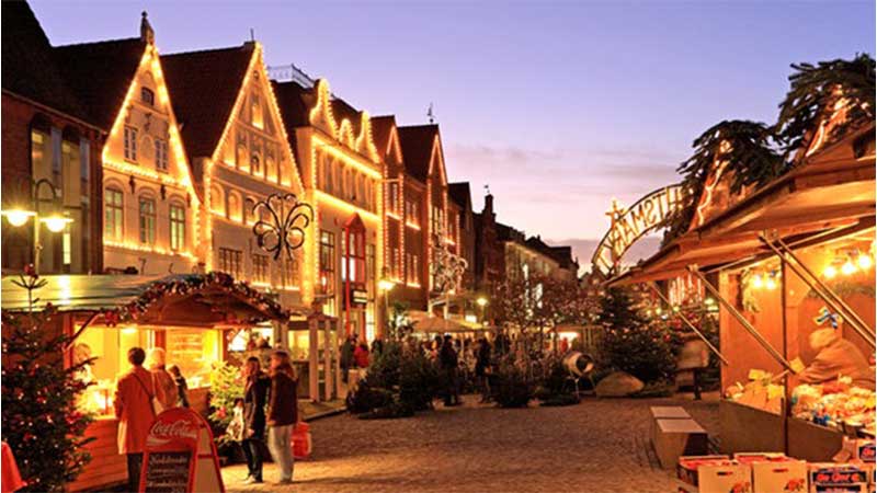 Vi reser över de danska öarna till Flensburg där vi äter och shoppar först på ett varuhus och sedan inne i stan. Julmarknaden breder ut sig mellan norra och södra torget och har ett brett utbud av hantverk, delikatesser samt gatumusikanter som höjer julstämningen. Staden är också berömd för sin Rom så missa inte heller ett besök på bryggeriet. När kvällen närmar sig tar vi oss ner till Husum där vi ska bo samt spendera nästa dag. Vi avslutar dagen med middag på Hotel am Schlosspark där vi ska bo två nätter.