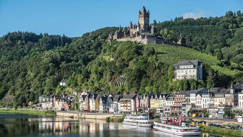 Efter en god frukost är det dags att utforska Moseldalen. Dess sluttningar är extremt branta, vilket medför att de druvor som växer här får oerhört mycket sol. Det är hemligheten bakom den fruktiga sötma som är så typisk för Moselvinerna. Vi gör en båttur på floden Mosel från Traben Trarbach till Bernkastel och njuter av den vackra dalen. Byn Traben Trarbach går helt i jugendstil och det är många av husen som inrymmer stora vinkällare. Här ifrån är det inte långt till Zell som blivit världsberömt för sitt vin ”Zeller schwarze Katz”. På eftermiddagen gör vi ett besök på en vingård där vi får prova 5 olika viner och höra mer om produktionen på gården.