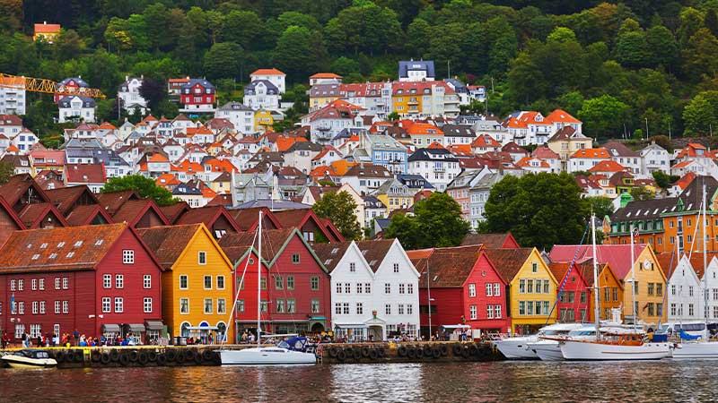 Idag tittar vi närmare på Bergen som är en livlig handels- och kulturstad. Staden ligger omringad av vatten och sju berg men genom sin hamn har man en lång historia och ett globalt klimat. Här är en trevlig strandpromenad men också en charmig trähusbebyggelse med kullerstensgränder och mycket intressanta museer. Vi promenerar genom det gamla Bergen och ser bland annat de vackra trälagerhusen som uppfördes under Hansatiden. Vi får naturligtvis också se det kungliga residenset, Rosenkranz torn och Grieg hallen där Bergen Filharmonikerna håller till. Vill man få en vacker vy över staden ska man åka upp med linbanan till berget Flöiens topp. Vi rekommenderar även ett besök på den livliga fiskmarknaden under den lediga eftermiddagen.