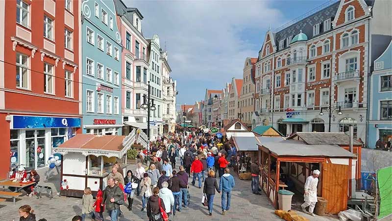 Vi reser via Öresundsbron och färjan från Gedser till Rostock ner till Tyskland. Här börjar vi med lite shopping på Calles innan vi åker in till centrum till Penta Hotel där vi ska bo en natt. Vi bor mitt i centrum nära torget där påskmarknaden redan är i full gång. Den sträcker sig sen upp längs Breite Strasse. Kanske är det här vid något av de trevliga matstånden som kvällens middag intas annars finns det många restauranger att välja på.