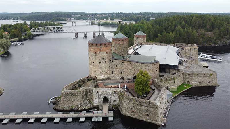 När vi ätit frukost går färden norrut förbi Imatra som ligger inklämd mellan Saimen och Ryssland vid älven Vouksen. Vi tar oss upp på den 7 km långa Punkaharjuåsen som var en viktig, om än farlig väg en gång i tiden. Man har rustat upp både skyddsrum och skyttegravar som löper utmed åsen och som finnarna anlade efter sin självständighet om i fall att det skulle komma fler anfall från Sverige eller Ryssland. Det är en vacker utsikt som möter oss, i detta av inlandsisen bildade landskap. Även skalden Runeberg har fått sitt minnesmärke här uppe. När vi njutit av utsikten fortsätter vi till Kerimäki där vi återfinner världens största träkyrka uppförd 1847 för att kunna rymma alla byns 3400 invånare. Målet för dagen är Savonlinna där vi ska bo en natt på Sokos Hotel Seurahuonen. Detta är en underbar sommarstad belägen mellan två sjöar och känd bland annat för sin operafestival. På en egen ö utanför staden ser vi Per Brahes mäktiga fästning Olofsborg trona majestätiskt. Här finns det möjlighet att följa med på en guidad tur innan vi checkar in Sokos Hotell. På kvällen träffas vi igen för en gemensam middag. Cirka 20 mil