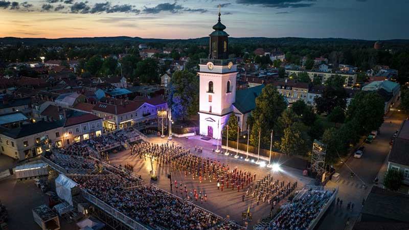 Vi lämnar Skåne på morgonen för färd genom de småländska skogarna upp till Rydaholm. Här väntar besök på Smålands bil-, musik- och leksaksmuseum. Ett underbart ställe med gammal lanthandel, radioaffär, cykel/mopedaffär skomakeri och antikshop. Här är även en Londongata och en stor traktorsamling. Vi har god tid att gå omkring och titta på allt. Färden fortsätter sedan till Nässjö där vi ska bo en natt på Hotell Högland. Här får vi lite tid att vila upp oss innan vi äter en tidig middag. Vi ska sen bege oss till Eksjö för att se resans höjdpunkt Eksjö International Tattoo. Här mitt i den gamla trästaden har man byggt upp arenan som lockat orkestrar från när och fjärran. Utöver den Svenska Marinens musikkår får vi se Finska Marinens musikkår, Belgiska Marinens musikkår, Japanska arméns musikkår och en ungdomsorkester från Danmark. Det blir ca 400 artister som uppträder och även säckpipor utlovas. Efter föreställningen återvänder vi till vårt hotell för övernattning. Ca 28 mil.