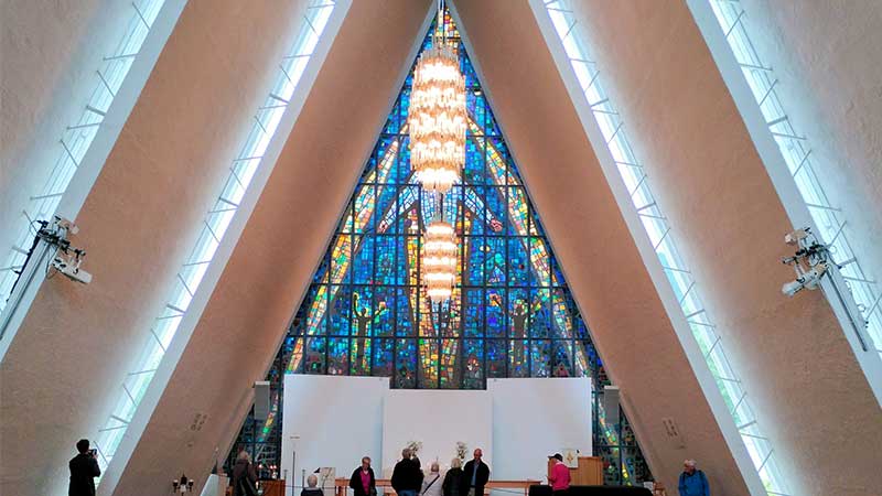 I dag börjar vi med ett besök på Tromsö museum. Ett stort fint museum där man på ett trevligt pedagogiskt sätt ökar förståelsen för den natur och kultur vi kommer att möta här uppe. På vår rundtur utforskar vi ön som Tromsö ligger på och naturligtvis ser vi den märkliga Ishavskatedralen. Eftermiddagen fri för egna strövtåg. Säkert lockar aktiviteterna i hamnen vid Hurtigrutens ankomst eller kanske någon tar linbanan för att njuta av den storslagna utsikten över staden.